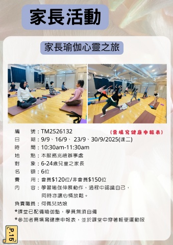 家⻑瑜伽⼼靈之旅                                                                              家⻑藝術探索之旅