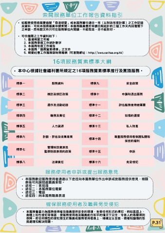 本中心根據社會福利署所規定之16項服務質素標準推行及實踐服務。